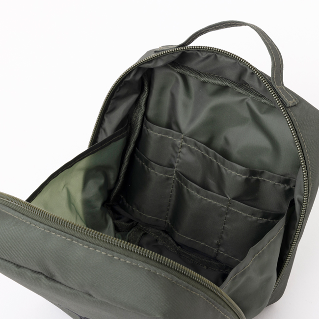 ふかふかのクッション入りで、ガバッと大きく開く形状やたっぷり付いたポケットなど、使いやすさにとことんこだわりました。