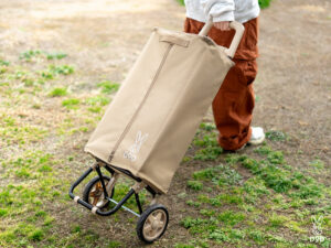 電車の座席でも邪魔にならないスリム形状の軽量カート。