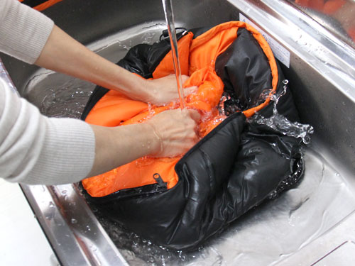 夏場のキャンプ(※高地などを除く)では手足を包むことは不必要と考え、重要な胴体部分のみを保温する構造としました。