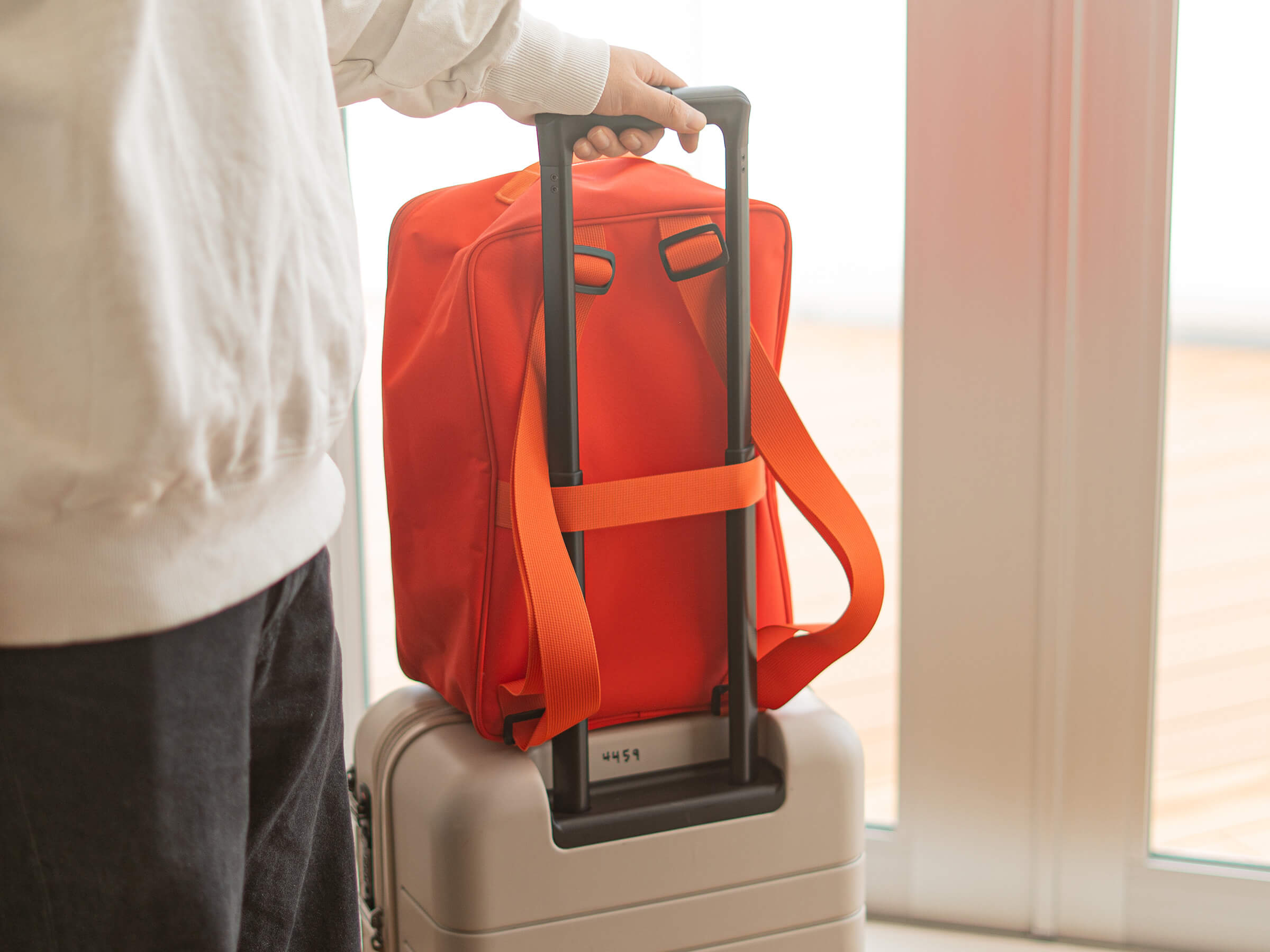 軽度の雨を弾くことができますが、完全防水ではありません。車のトランクへの常備やスーツケース内のインナーバッグとしての使用を想定して開発しているため、そのような環境で活用いただければ濡れる心配なく備えることが可能です。