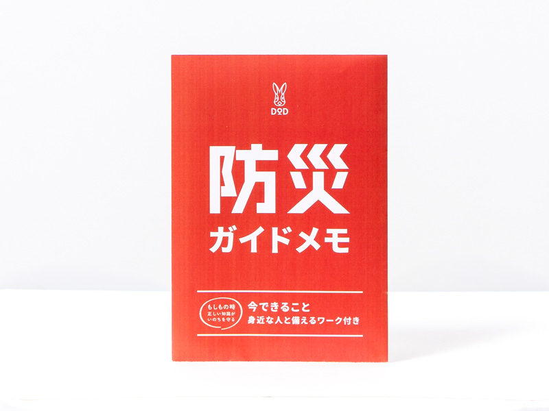 避難経路を確認して作る「防災マップ」など、書き込み式のDODオリジナルガイドが付属 。