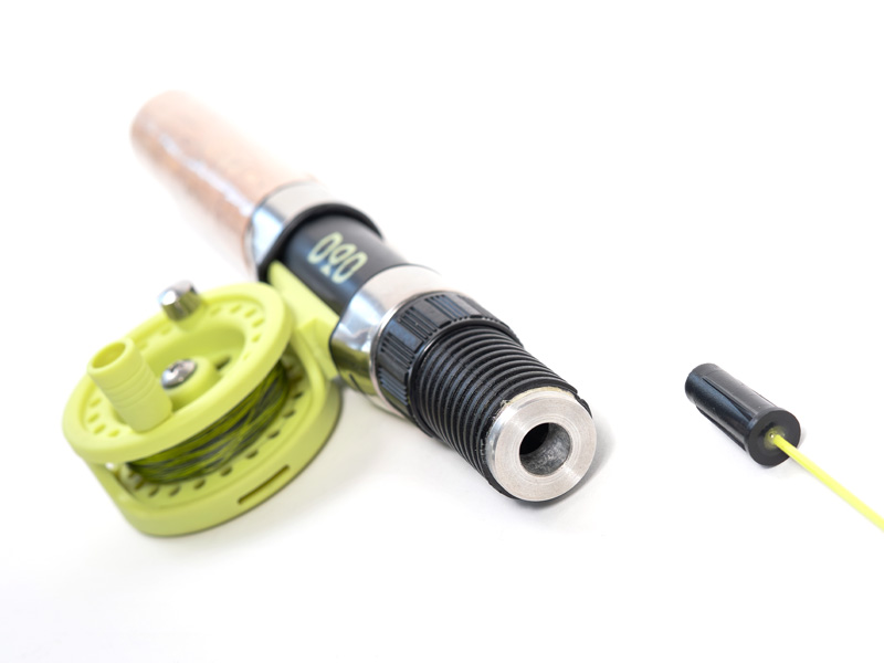 ワカサギが集まっている水深を探るのが釣りのコツ。1mごとに糸の色が変わるので、何メートルで釣れたかがすぐにわかります。遠くからでも見やすく、糸の動きで魚のサインも確認しやすいのが特徴です。