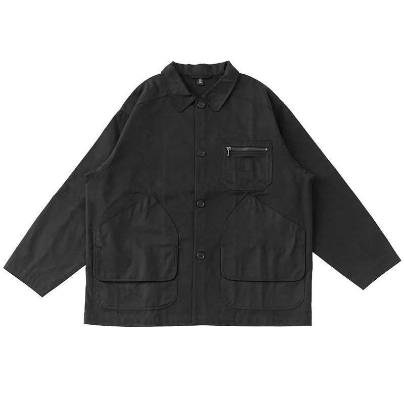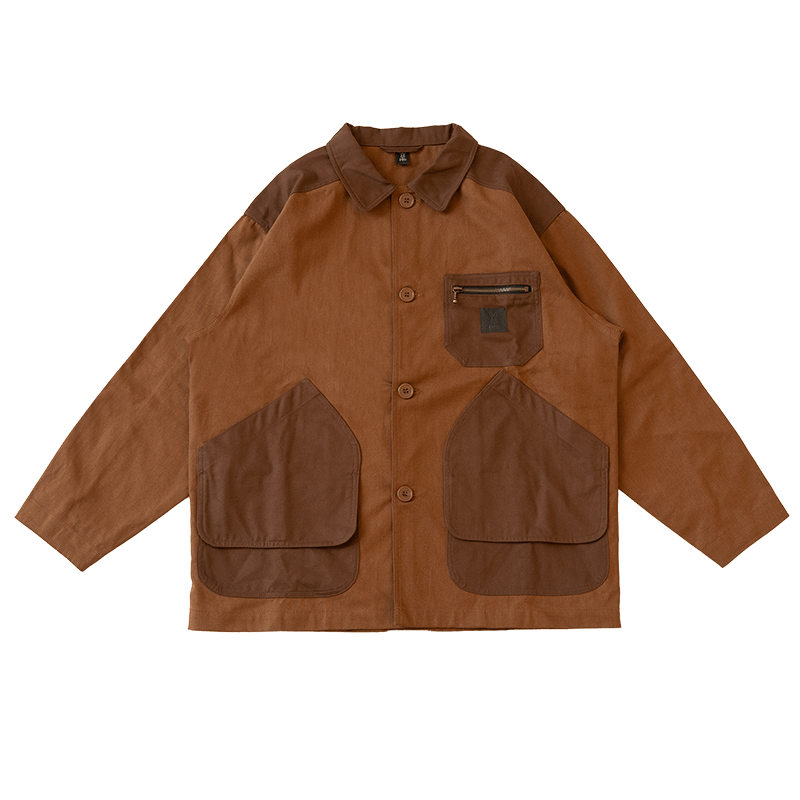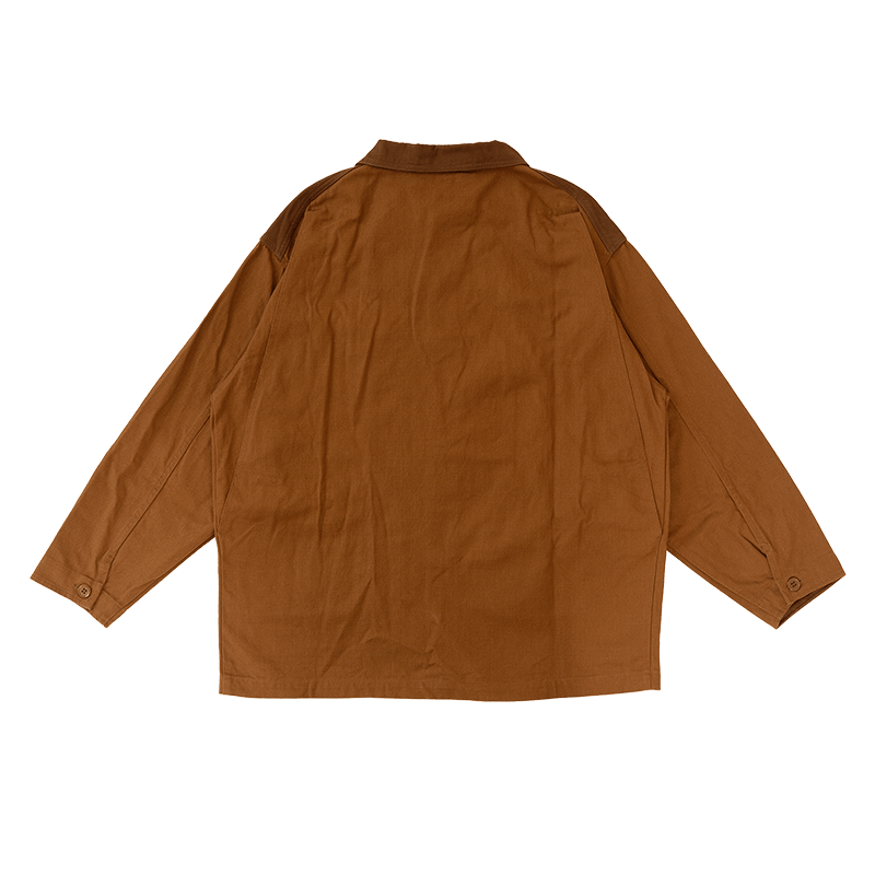 ●本体は厚手のコットン帆布生地を採用し丈夫に。衿などの部分使いにコットンツイル生地を採用し、重くなりすぎないよう調整しました。