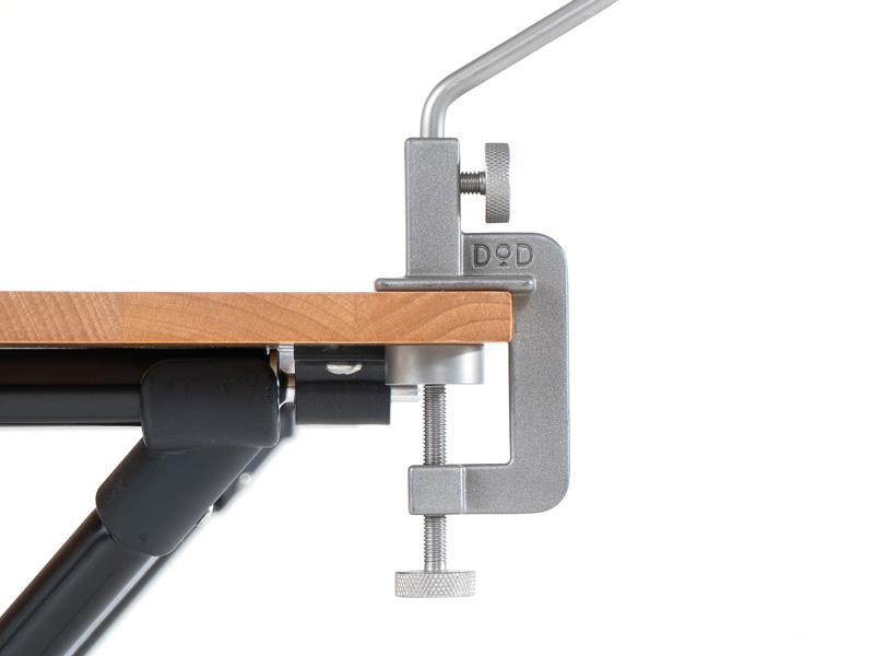 クランプネジを手で締めるだけ。厚さ26mmまでの天板に設置することができます。