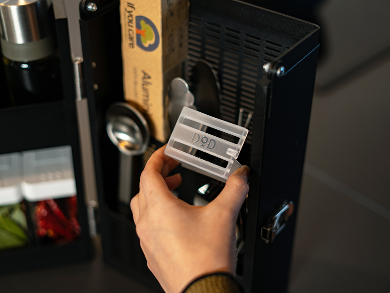 キッチン道具&調味料のオールインワン設計。家で使っているキッチンアイテムをそのままキャンプに持ち出せるので、現地での「あれ忘れた、これ忘れた」を防ぎます。いつもの調理器具でスムーズに料理できます。