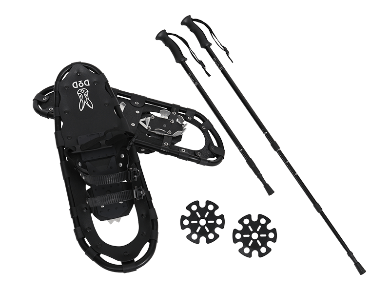 なだらかな傾斜や平地向けのスタンダードなスノーシュー&トレッキングポールのセット。スノーシューは初心者の方でも扱いやすいように軽量なアルミフレームを採用。雪山散策の必需品、トレッキングポールが付属します。