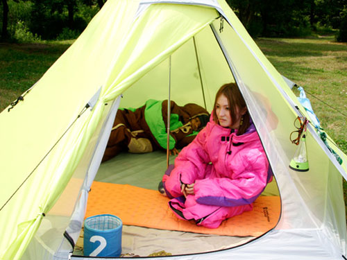 簡単に設営できてコンパクトに収納できる3人用ティピー型テント。
