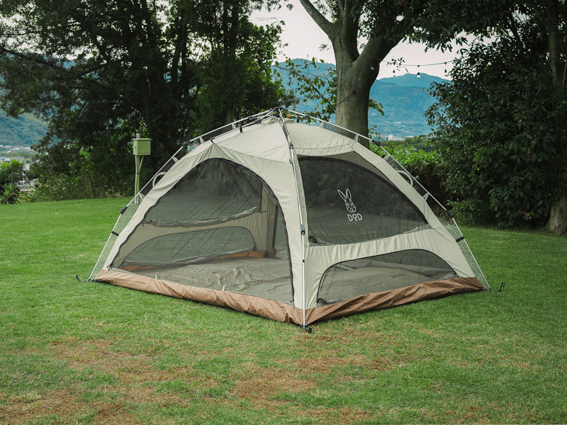 あらゆるキャンプスタイルに対応できる万能ワンタッチテント。