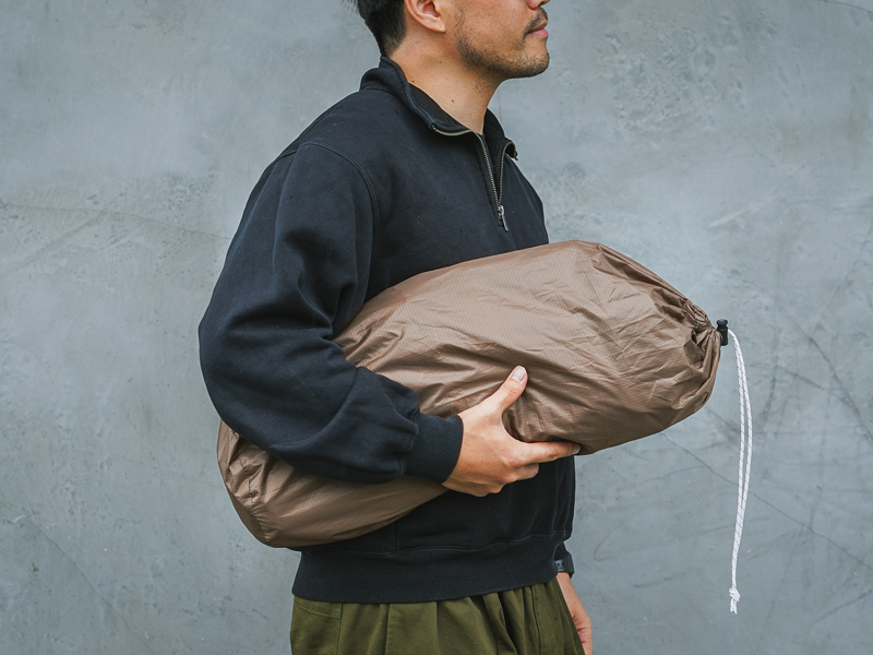 こだわりのシェルターを持っているなら、中にインしてカンガルースタイルを楽しむことも。