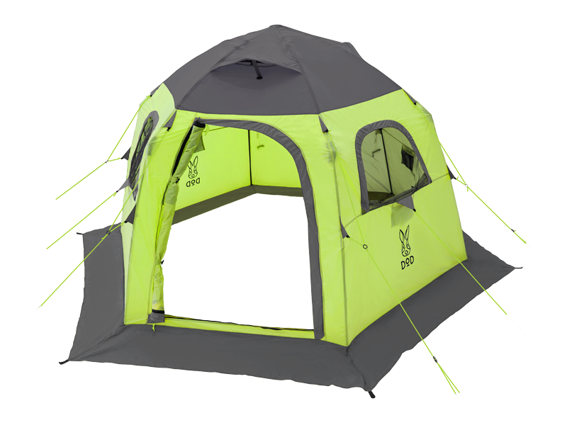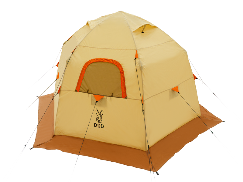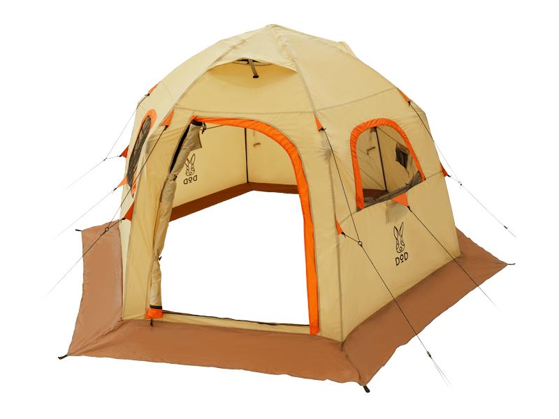 本製品はテント一面あたりの面積が小さいヘキサゴン形状を採用。テントが飛びにくい形状です。また6本足でテントを支えることで4本足のテントと比べ高い安定性を確保しています。